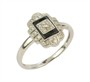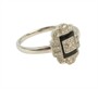 Prsten z bílého zlata ryzosti 585/1000 s onyxem a diamanty briliantového brusu o celkové hmotnosti 0,15 ct. Celková hmotnost prstenu je 2,49 g. Velikost 56.