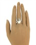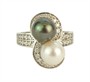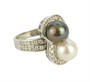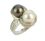 Prsten z bílého zlata ryzosti 585/1000 je zdobený jednou bílou a jednou tahitskou perlou. Dále je osazený drobnými diamanty briliantového brusu o celkové hmotnosti 0,7 ct. Celková hmotnost prstenu je 5,94 g a jeho velikost je 57.
