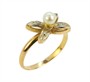 Prsten ze zlata ryzosti 585/1000 zdobený perlou a diamantovými routami. Velikost prstenu 59. Rozměry hlavy prstenu 1,3 x 0,8 cm. Celková hmotnost 2,90 g.