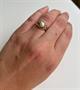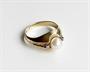 Půvabný prsten s pravou perlou, puncovaný, žluté zlato o ryzosti 585. Hmotnost 2,77, velikost 52. Výborný stav.