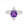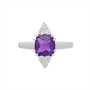 14 karátové bílé zlato 585/1000, celková hmotnost 3,49 g | Přírodní ametyst 1ks: vysoké kvality 1,176 ct | Přírodní diamanty briliantového brusu 6ks: 0,221 ct (bílá barva, VS) | Velikost prstenu 56,5 | Výborný stav, nepoužité | Kameny zkontrolovány v gemologické laboratoři | Přiložen certifikát pravosti ČGL | Zařizujeme veškerý profesionální zlatnický servis - úpravy velikosti, opravy, rhodiování, čištění, výměnu kamenů, znalecké odhady, certifikace a další služby dle vašich potřeb.