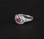 Zlatý prsten s rhodolitem o hmotnosti 0,5 ct a diamanty routového brusu. Celková hmotnost Au 1,82 g/750/1000, punc. Západní Evropa, začátek 21. století, velikost prstenu 54.