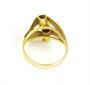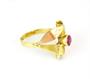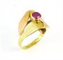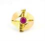 Prsten vyrobený v kombinaci žlutého a růžového zlata ryzosti 585/1000 (punc čejka) zdobený červeným syntetickým rubínem. Velikost 51. Celková hmotnost: 2,84 g.