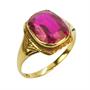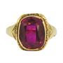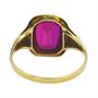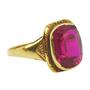 Prvorepublikový prsten ze žlutého zlata ryzosti 585/1000 osazený syntetickým rubínem, punc lvíček. Celková hmotnost je 3,70 g. Velikost 61.