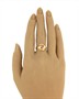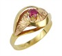 Prsten zhotovený v kombinaci žlutého a růžového zlata ryzosti 585/1000 zdobený rubínem. Celková hmotnost prstenu je 2,97 g. Velikost 58.