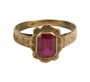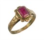 Zlatý starožitný prsten se syntetickým rubínem, zlato ryzosti 250/1000, hmotnost 1,86 g. Velikost prstenu 53.