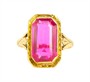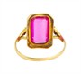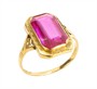 Starožitný prsten z počátku 20. století ze žlutého zlata ryzosti 585/1000 je osazen syntetickým rubínem. Punc prvorepubliková čejka. Velikost prstenu 66. Celková hmotnost prstenu je 4,09 g.