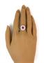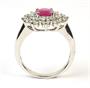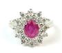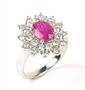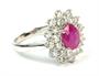 Prsten z bílého zlata ryzosti 585/1000 s rubínem, jehož hmotnost je 1,25 ct a s čtyřiadvaceti diamanty briliantového brusu o celkové hmotnosti 1,30 ct. Celková hmotnost prstenu je 5,55 g. Velikost 55.