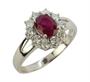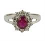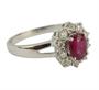 Prsten z bílého zlata ryzosti 585/1000 zdobený rubínem (0,90 ct) a diamanty briliantového brusu o celkové hmotnosti 0,45 ct (SI-PI/H). Velikost 56. Celková hmotnost 2,70 g.