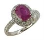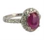 Prsten z bílého zlata ryzosti 585/1000 zdobený rubínem (1,45 ct) a diamanty briliantového brusu o celkové hmotnosti 0,6 ct (SI-PI/H). Velikost 54. Celková hmotnost 3,70 g.