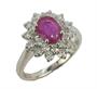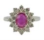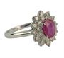 Prsten z bílého zlata ryzosti 585/1000 zdobený rubínem (0,75 ct) a diamanty briliantového brusu o celkové hmotnosti 0,85 ct (SI-PI/H). Velikost 54. Celková hmotnost 3,95 g.