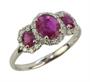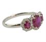 Prsten z bílého zlata ryzosti 585/1000 zdobený rubíny a diamanty briliantového brusu o celkové hmotnosti 0,30 ct (SI/H). Velikost 56. Celková hmotnost 2,21 g.
