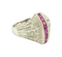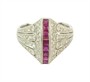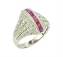 Prsten v art deco tvarosloví z bílého zlata ryzosti 585/1000 osazený přírodními rubíny o celkové hmotnosti 0,50 ct a diamanty briliantového brusu o celkové hmotnosti 0,50 ct (PI/H). Celková hmotnost prstenu je 4,67 g. Velikost 54.