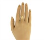 Secesní prsten vyrobený ze zlata ryzosti 700/1000 zdobený rytinou znázorňující květinu s rubíny a diamantovými routy. Velikost 58. Osvědčení puncovního úřadu. Celková hmotnost 2,83 g.