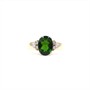 zlatý prsten s turmalínem a diamanty, hmotnost turmalínu v oválném brusu je cca 2,00 ct ( 9.1×6.9mm ), 6 ks. diamantů briliantového brusu o celkové hmotnosti cca 0,20 ct, Au btto 3,16 g/585/1000, Evropa, kolem r. 1995, platný punc, velikost prstenu 56