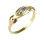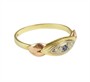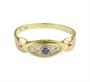 Prsten vyrobený v kombinaci žlutého a růžového zlata ryzosti 585/1000 zdobený safírem. Velikost 54. Celková hmotnost 1,73 g.