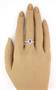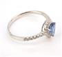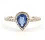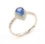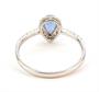 Prsten z bílého zlata ryzosti 750/1000 zdobí přírodní safír hmotnosti 0,70 ct a 29 briliantů celkové hmotnosti 0,20 ct. Velikost prstenu 56-57, celková hmotnost 2,05 g.