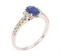 Prsten z bílého zlata ryzosti 585/1000 zdobený přírodním safírem o hmotnosti 0,80 ct a diamanty briliantového brusu o celkové hmotnosti 0,25 ct (SI-PI/H). Velikost 56. Celková hmotnost 2,24 g.