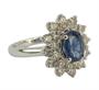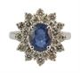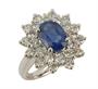 Prsten z bílého zlata ryzosti 585/1000 zdobený safírem (1,85 ct) a diamanty briliantového brusu o celkové hmotnosti 1,30 ct. Velikost 54. Celková hmotnost 5,49 g.