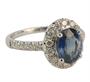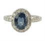 Prsten z bílého zlata ryzosti 585/1000 zdobený safírem (1,45 ct) a diamanty briliantového brusu o celkové hmotnosti 0,6 ct (SI-PI/H). Velikost 54. Celková hmotnost 3,39 g.