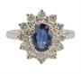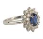 Prsten z bílého zlata ryzosti 585/1000 zdobený safírem (0,75 ct) a diamanty briliantového brusu o celkové hmotnosti 0,85 ct (SI-PI/H). Velikost 54. Celková hmotnost 3,90 g.