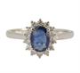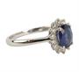 Prsten z bílého zlata ryzosti 585/1000 zdobený safírem (0,85 ct) a diamanty briliantového brusu o celkové hmotnosti 0,25 ct (SI-PI/H). Velikost 56. Celková hmotnost 2,31 g.