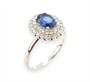 Prsten z bílého zlata ryzosti 585/1000 s přírodním safírem o celkové hmotnosti 0,70 ct a diamanty briliantového brusu o celkové hmotnosti 0,40 ct. Celková hmotnost prstenu je 2,88 g. Velikost 57.