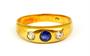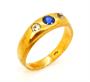 169580Zlatý prsten se safírem a leukosafíry