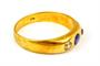 Prsten ze žlutého zlata ryzosti 585/1000 (punc liška) osazený jedním modrým safírem a dvěma leukosafíry. Velikost prstenu je 57, celková hmotnost 4,02 g.
