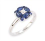 Prsten z bílého zlata ryzosti 585/1000 se safíry o celkové hmotnosti 0,80 ct a diamantem briliantového brusu o hmotnosti 0,07 ct (SI-PI/H). Celková hmotnost prstenu je 2,04 g. Velikost 56.