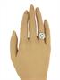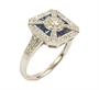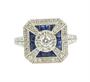 Prsten z bílého zlata ryzosti 585/1000 zdobený diamanty briliantového brusu o celkové hmotnosti 0,46 ct (SI-PI/H) a safíry o celkové hmotnosti 0,52 ct. Velikost 54,5. Celková hmotnost 3,85 g.