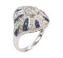 Prsten z bílého zlata ryzosti 585/1000 zdobený diamanty briliantového brusu o celkové hmotnosti 0,80 ct (SI-PI/H) a safíry o celkové hmotnosti 0,90 ct. Velikost 55. Celková hmotnost 5,13 g.