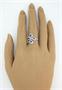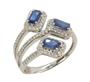 Prsten z bílého zlata ryzosti 585/1000 zdobený safíry (0,70 ct) a diamanty briliantového brusu o celkové hmotnosti 0,30 ct (SI-P/H). Velikost 56. Celková hmotnost 3,37 g.