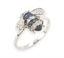 Prsten z bílého zlata ryzosti 585/1000 ve tvaru včely se safíry o celkové hmotnosti 0,10 ct a diamanty briliantového brusu o celkové hmotnosti 0,15 ct. Celková hmotnost prstenu je 2,22 g. Velikost 56.
