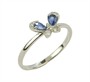 Prsten - motýlek z bílého zlata ryzosti 585/1000 osazený safíry o celkové hmotnosti 0,30 ct a diamanty briliantového brusu o celkové hmotnosti 0,10 ct (SI-PI/H). Celková hmotnost prstenu je 1,59 g. Velikost 56.