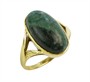 Zlatý prsten s modrozeleným serafinitem, tzv. andělským kamenem. Prsten je zhotoven ze zlata ryzosti 585/1000, hlava prsten má dekorativní, mírně rozšířená, částečně gravírovaná ramena, která drží kámen v hladké oválné obrubě. Hmotnost prstenu 5,12 g, velikost 59.
