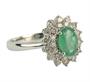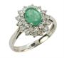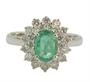 Prsten z bílého zlata ryzosti 585/1000 zdobený smaragdem (0,65 ct) a diamanty briliantového brusu o celkové hmotnosti 0,70 ct (SI-PI/H). Velikost 55. Celková hmotnost 2,85 g.