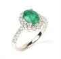 Prsten z bílého zlata ryzosti 585/1000 s překrásným smaragdem o hmotnosti 1,25 ct a s čtyřiadvaceti diamanty briliantového brusu, jejichž celková hmotnost je 0,55 ct. Celková hmotnost prstenu je 3,44 g. Velikost 55.
