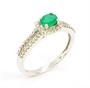 Prsten z bílého zlata ryzosti 585/1000 zdobený přírodním smaragdem a brilianty o celkové hmotnosti 0,21 ct. Velikost 55. Celková hmotnost 2,18 g.
