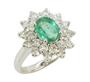 Prsten z bílého zlata ryzosti 585/1000 zdobený smaragdem (1,10 ct) a diamanty briliantového brusu o celkové hmotnosti 1,30 ct. Velikost 54. Celková hmotnost 5,27 g.