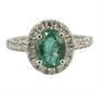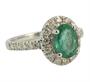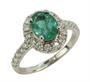 Prsten z bílého zlata ryzosti 585/1000 zdobený smaragdem (1,25 ct) a diamanty briliantového brusu o celkové hmotnosti 0,6 ct (SI-PI/H). Velikost 56. Celková hmotnost 3,44 g.