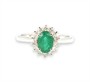 Prsten z bílého zlata ryzosti 585/1000 se smaragdem o celkové hmotnosti 0,70 ct a diamanty briliantového brusu o celkové hmotnosti 0,25 ct. Celková hmotnost prstenu je 2,16 g. Velikost 56.