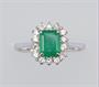 zlatý dámský prsten s diamanty briliantového brusu o hmotnosti 0,28 ct a smaragdem o hmotnosti 0,90 ct, Au 3,73g/750/000, západní Evropa, kolem r. 1990, velikost 55,5; znalecký posudek