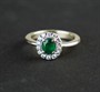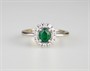 zlatý prsten se smaragdem a diamanty, hmotnost smaragdu cca 0,6 ct (rozměr 6x5mm), hmotnost 14ti diamantů briliantového brusu je cca 0,15 ct, Au 4,09 g/585/1000, Česko, kolem r. 2000, platný punc (labuť), velikost prstenu 53