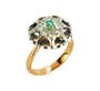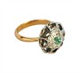Prsten vyrobený z bílého a růžového zlata ryzosti 585/1000 (punc labuť) zdobený centrálním smaragdem a diamanty. Celková hmotnost 4,72 g. Rozměry hlavy 1,5 x 1,5 cm. Velikost prstenu 53