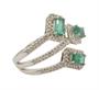 Prsten z bílého zlata ryzosti 585/1000 zdobený smaragdy (0,80 ct) a diamanty briliantového brusu o celkové hmotnosti 0,30 ct (SI-P/H). Velikost 56. Celková hmotnost 3,68 g.