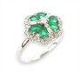 Prsten z bílého zlata ryzosti 585/1000 osazený sytě zelenými přírodními smaragdy o celkové hmotnosti 0,70 ct a diamanty briliantového a bagetového brusu o celkové hmotnosti 0,35 ct . Celková hmotnost prstenu je 2,32 g. Velikost 56.