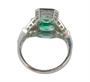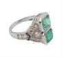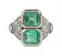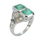 Honosný prsten z bílého zlata ryzosti 750/1000 zdobí dva krásné přírodní smaragdy - hmotností 1,80 ct a 1,35 ct. Po obou stranách smaragdy obklopují přírodní broušené diamanty celkové hmotnosti 0,95 ct. Jemné zdobení dotváří dva řádky drobných přírodních safírů celkové hmotnosti 0,1 ct. Velikost prstenu je 57. Celková hmotnost 6,64 g. K prstenu byl zhotoven znalecký posudek v České gemologické laboratoři.