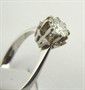 Zlato bílé 18 karátové, přírodní diamant. Ryzost Au 750/1000, celková hmotnost 3,70 g. Prsten z bílého zlata s větším kvalitním přírodním diamantem zasazeným ve vyvýšené korunce s krapnami tvořící efekt ornamentu hvězdy z čelního pohledu. Uprostřed přírodní diamant moderního briliantového brusu o hmotnosti 0,80 ct, barva I, čistota VS1. Značeno: ryzost 750, platný český punc, nečitelný italský punc. Itálie, třetí třetina minulého století. Velikost prstenu 54.
