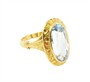 Art deco prsten vyrobený ze zlata ryzosti 585/1000 zdobený velkým broušeným spinelem. Rozměr hlavy prstenu 1,1 x 1,8 cm. Velikost 55. Hmotnost 3,61 g.